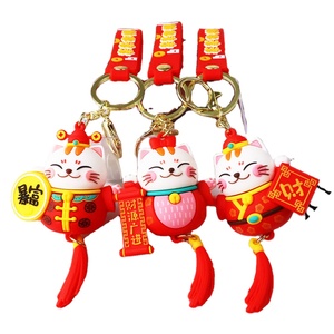LLavero de gato, llavero chapado en oro, mochila de gatito de la suerte, monedero decorado con llavero de goma suave 3D